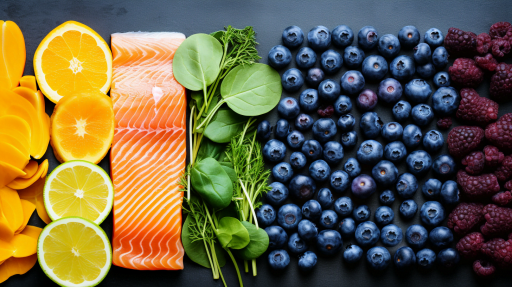 2. Frutas y verduras coloridas: Los antioxidantes presentes en frutas y verduras como las bayas, las zanahorias y los pimientos rojos ayudan a combatir los radicales libres y reducen la inflamación celular. Esto se traduce en una piel más luminosa y joven.