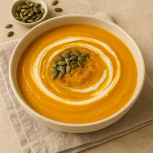 Una cena suave, cremosa y altamente antiinflamatoria. La calabaza y la zanahoria aportan betacarotenos, el jengibre ayuda a reducir la inflamación y mejorar la digestión, y la leche de coco añade una textura sedosa con grasas saludables. Es una opción perfecta para terminar el día con ligereza, confort digestivo y bienestar.