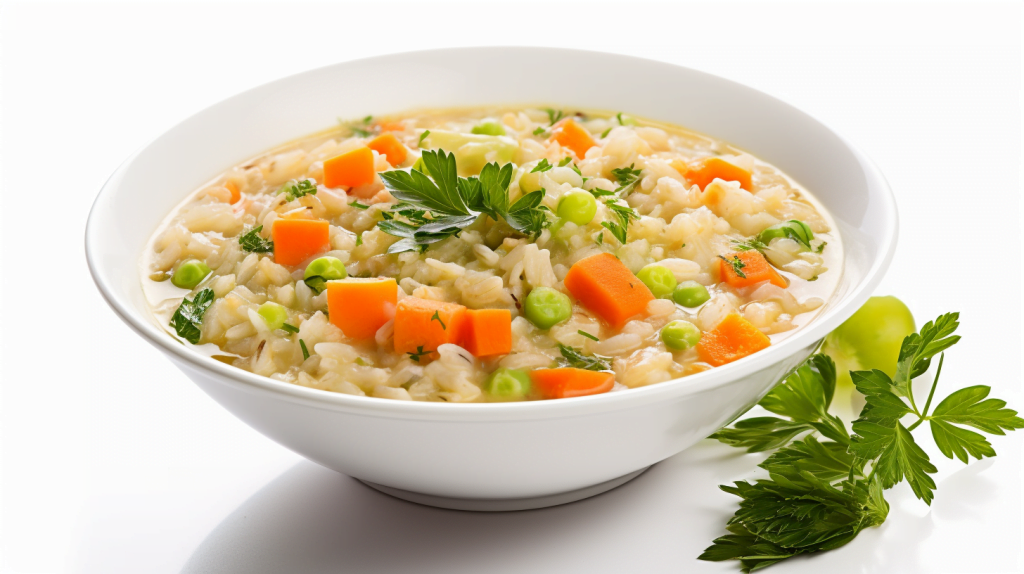 - Agrega el arroz integral cocido y el caldo de verduras y revuelve bien.